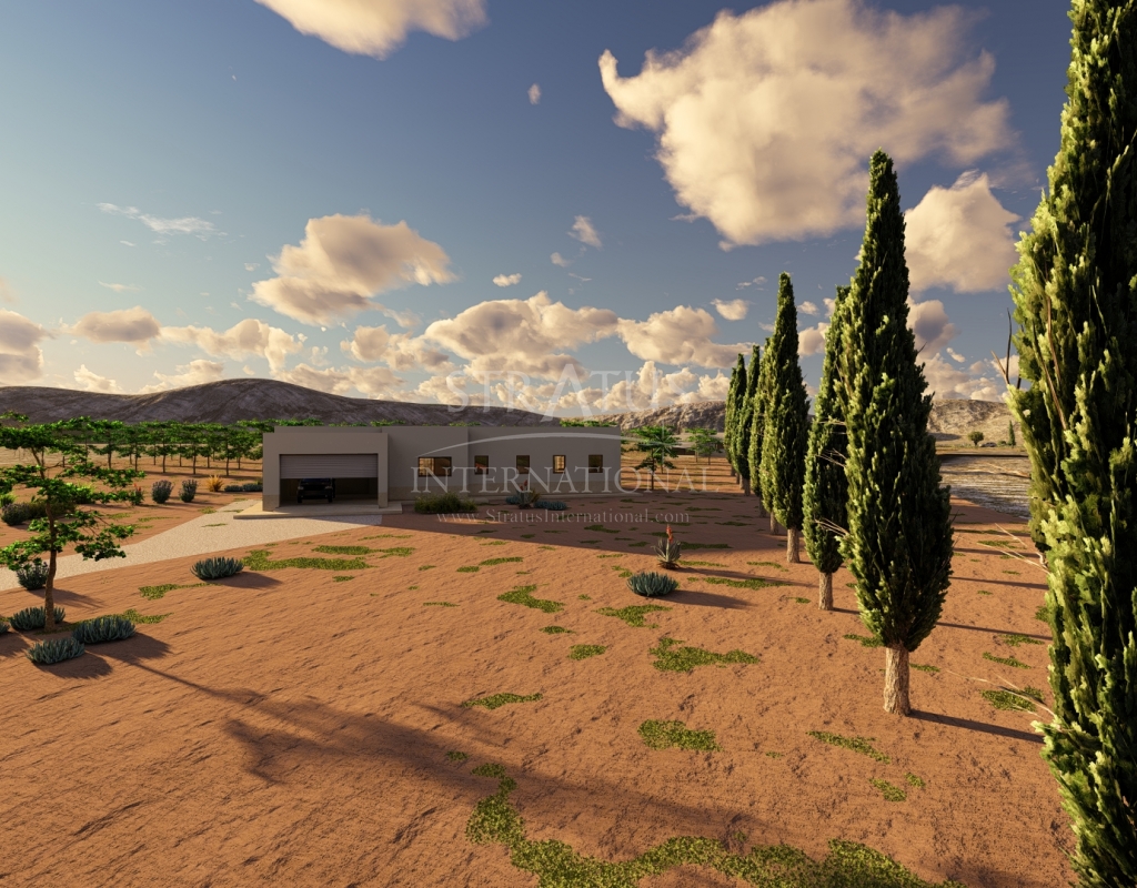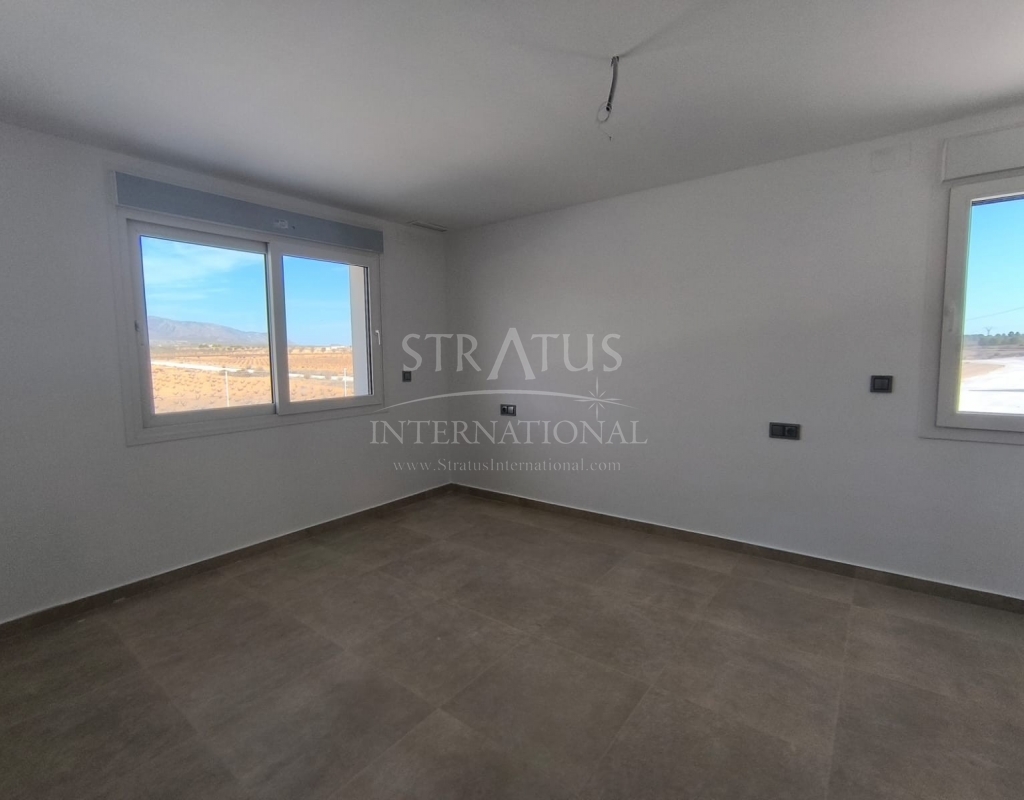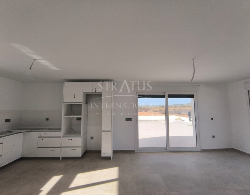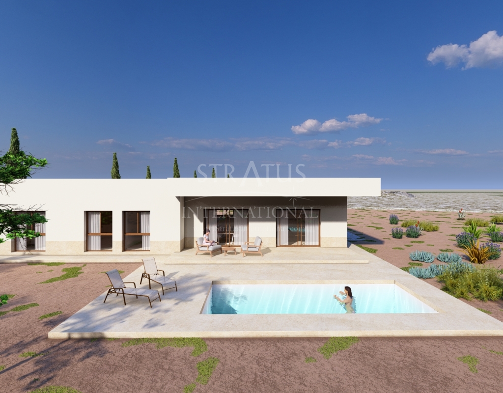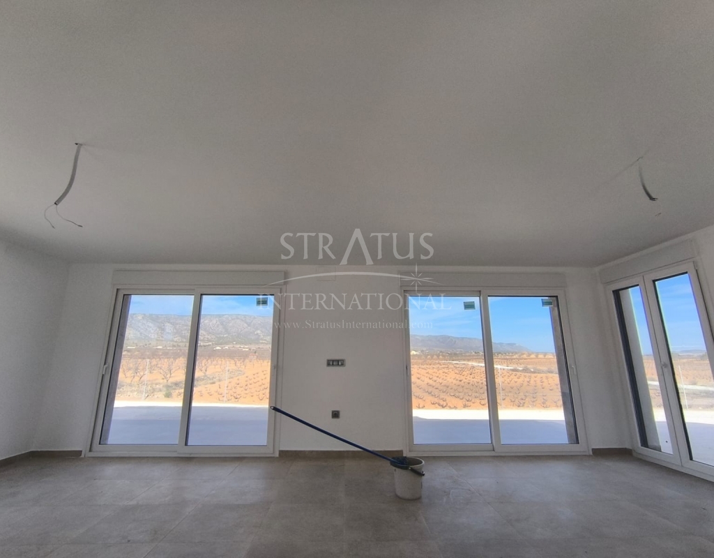This New Build 3-bedroom, 2-bathroom villa near Monovar offers modern living in a peaceful setting. The property includes a private pool with a metre of paving around it, providing a perfect space for outdoor relaxation. The villa is set on a generous plot with a perimeter fence enclosing approximately 2,000 m2, ensuring privacy and security.