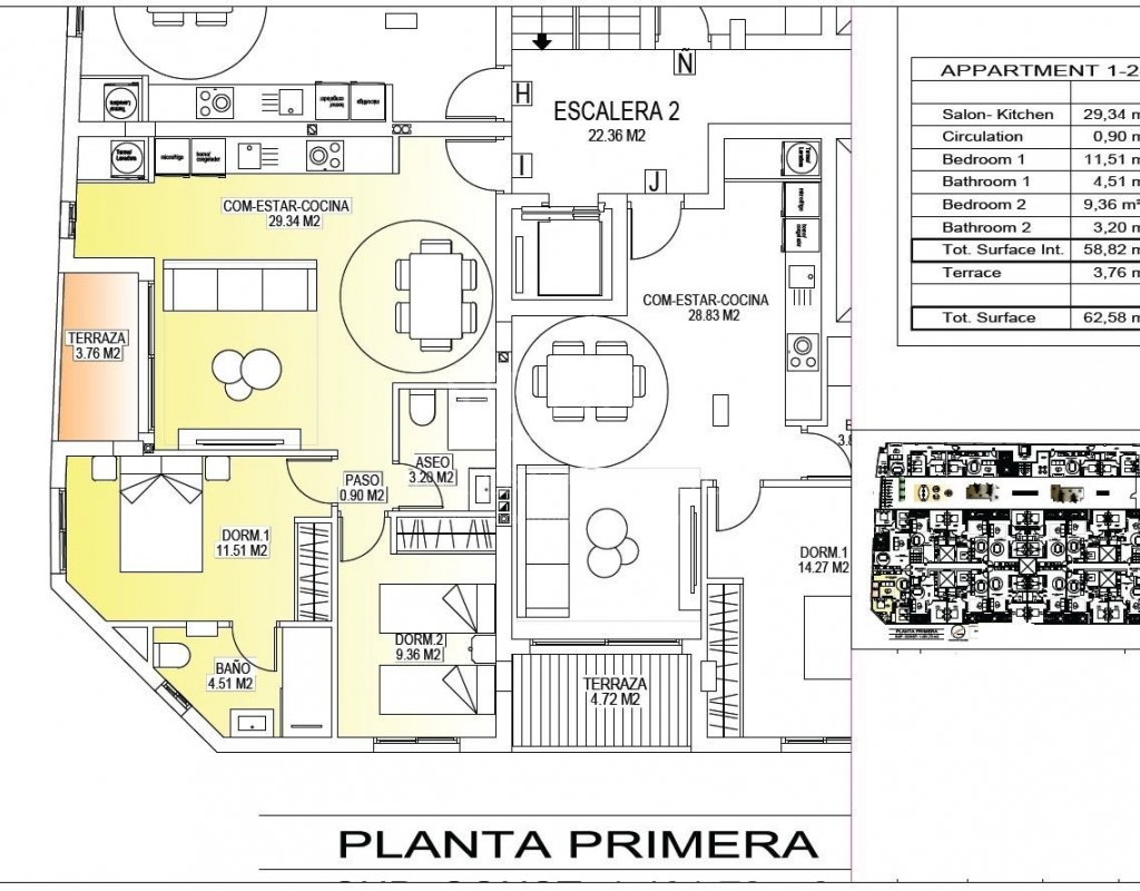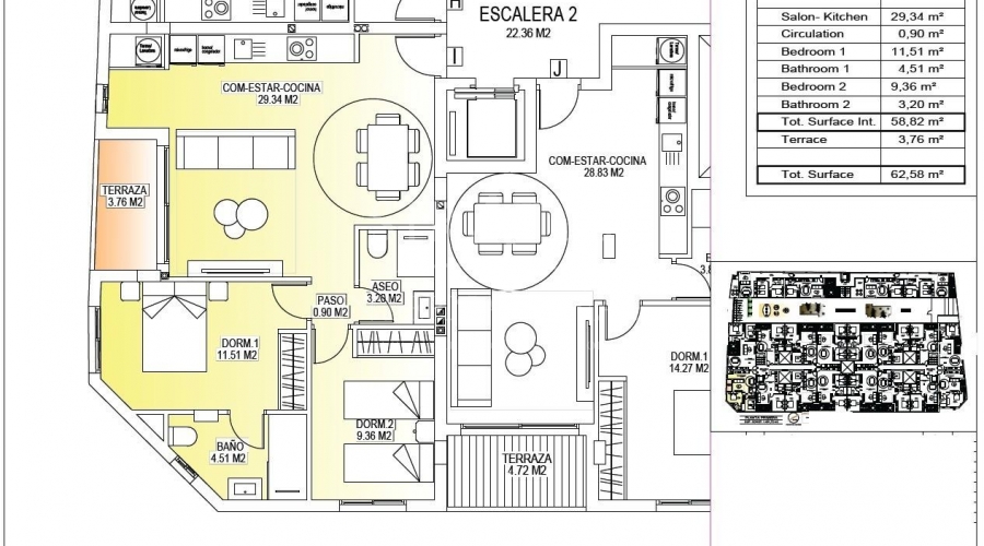 Modern New Build Apartments in the Center of San Miguel de Salinas Contemporary Living in a Healthy Mediterranean Environment Located in the charming town of San Miguel de Salinas, just 10 km from the Mediterranean Sea, this new residential development offers the perfect balance between modern comfort and natural surroundings. The area is well known for its nearby salt lakes and exceptional microclimate, considered one of the healthiest in Europe. This peaceful yet vibrant town allows residents to enjoy the authentic Mediterranean lifestyle while being within walking distance of shops, restaurants, supermarkets and all essential services. San Miguel de Salinas sits slightly inland on the Costa Blanca South, offering open views, fresh air and easy access to beaches, golf courses and shopping areas. Stylish Apartments Designed for Comfort and Efficiency The project consists of two modern buildings separated by a landscaped communal garden area. A total of 56 contemporary apartments are available with 1, 2 or 3 bedrooms, each featuring a private terrace. Every home has been designed with comfort, aesthetics and energy efficiency in mind, using high quality materials and modern insulation systems. Each apartment includes: Armored entrance door Bathrooms with vanity units Pre installation of ducted air conditioning Energy certificate rating A The layout and orientation of the homes ensure natural light throughout the day, creating bright and welcoming interiors ideal for both permanent living and holiday use. Exceptional Communal Areas for Relaxation and Social Life The ground floor communal space is designed as the social heart of the development, surrounded by landscaped gardens, seating areas, bicycle parking and a children’s playground. It is an ideal meeting point for residents of all ages. On the rooftop, an impressive 350 m2 leisure area awaits. This space includes a 70 m2 swimming pool with a separate children’s splash area, pergolas, sun loungers and shaded areas, allowing residents to relax while enjoying panoramic views. The rooftop is easily accessible by one of the three lifts and includes sanitary facilities for added comfort. Excellent Location Close to Key Points of Interest Mediterranean beaches 10 km Zenia Boulevard Shopping Center 9 km Villamartin Golf 6 km Las Colinas Golf 8 km Torrevieja Marina 12 km Alicante Airport 60 km Murcia Corvera Airport 55 km A Smart Investment in Costa Blanca South This residential complex combines modern architecture, quality finishes and a prime central location, making it an excellent choice for living, holiday enjoyment or rental investment. Contact us today for more information or to arrange a visit to these modern apartments in San Miguel de Salinas.Features