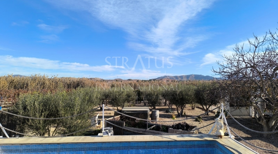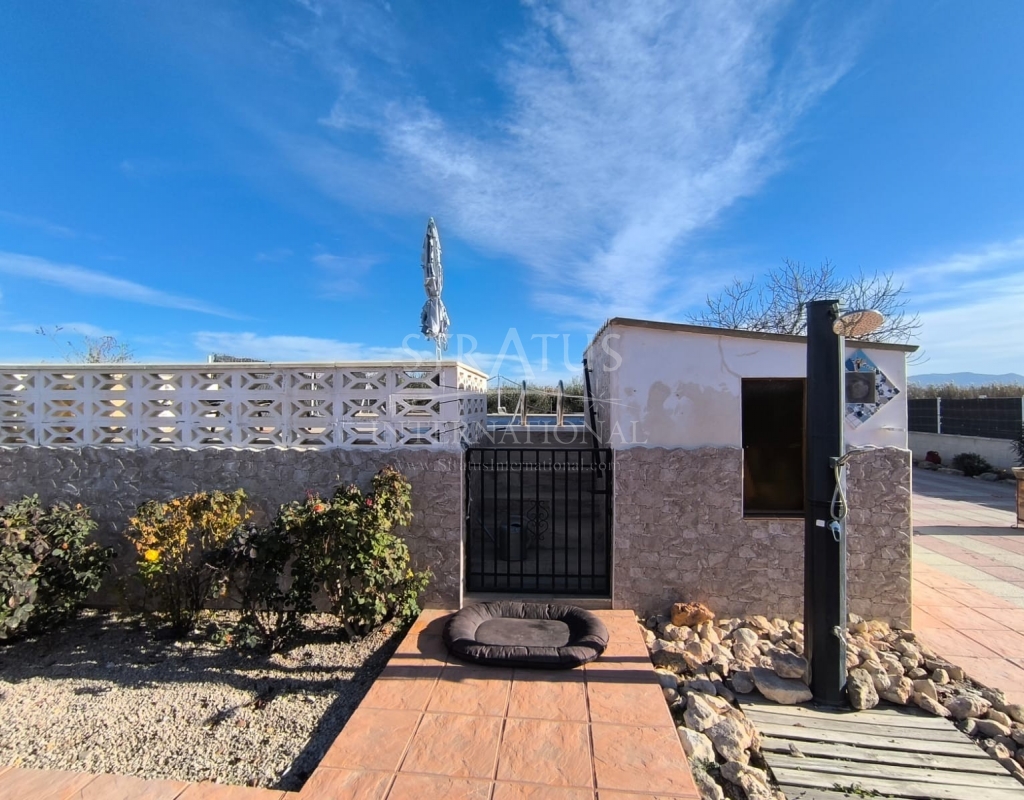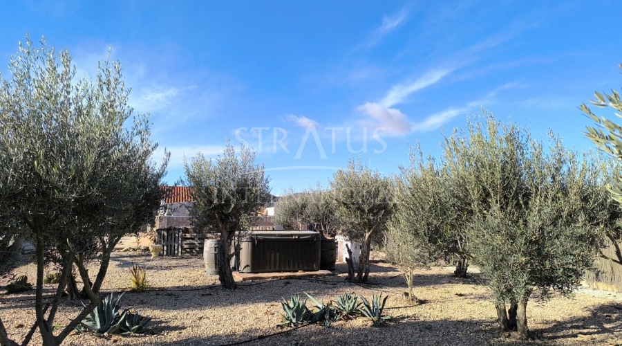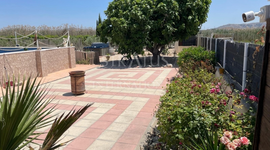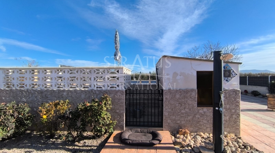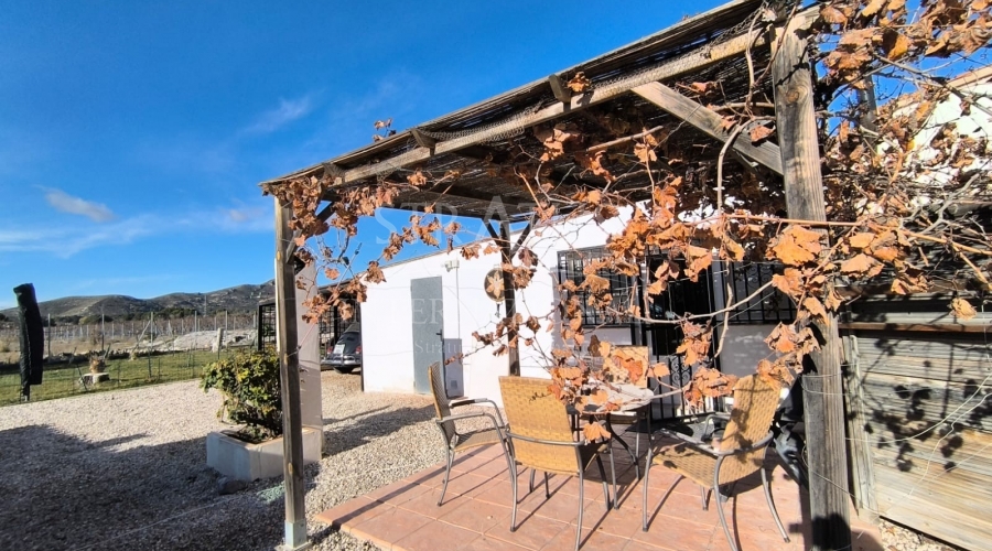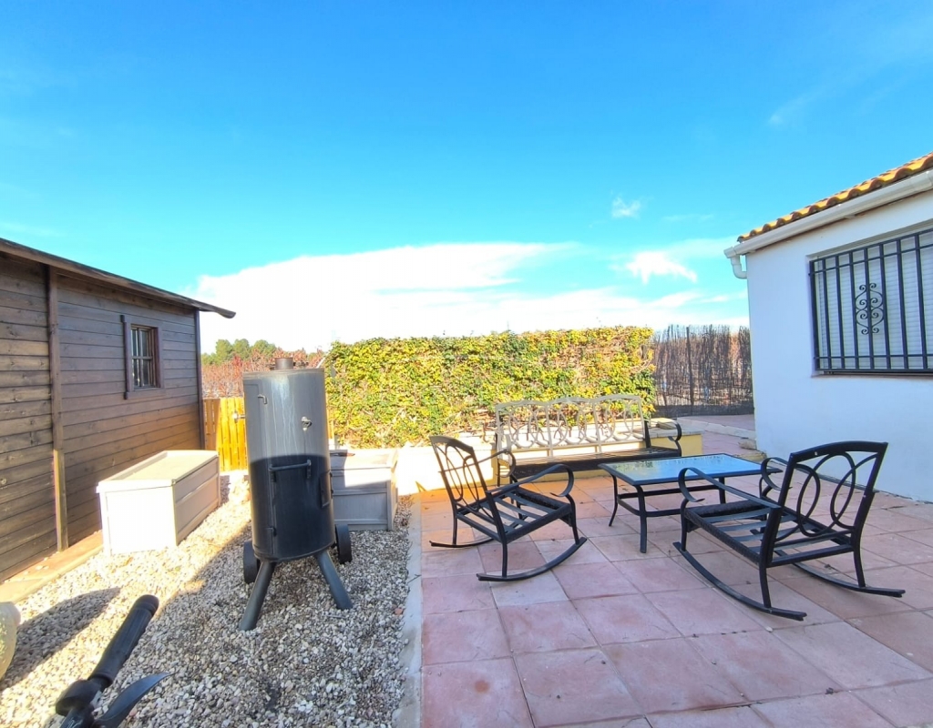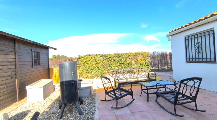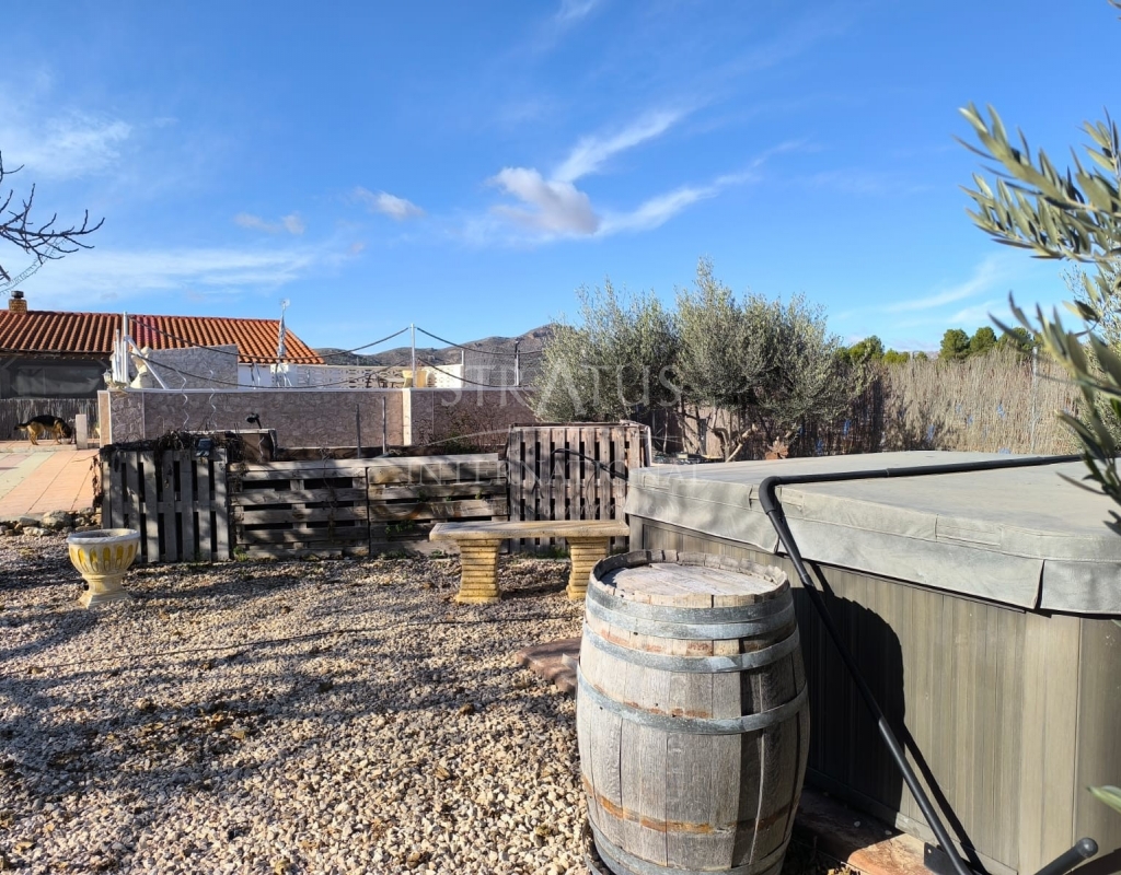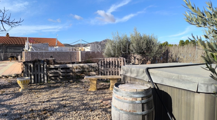 This well-maintained villa near Villena offers generous indoor and outdoor living on an 8,000 m² fully fenced plot with beautiful gardens, fruit trees and an olive orchard. With 210 m² built, the property includes a 4-bedroom main house and a separate guest studio, making it ideal for families, guests or those seeking extra space for work or leisure.