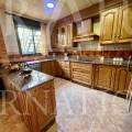 • Fully equipped kitchen with a central island, ample storage, and beautiful rustic wooden cabinetry.