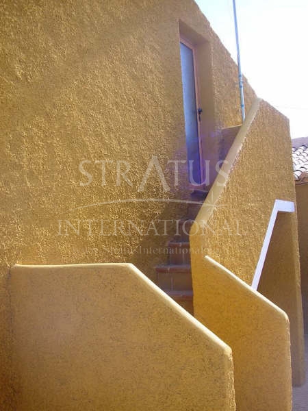 Outside, the property offers a generous patio of approximately 140 m². This private outdoor space includes a loft area and a barbecue, ideal for outdoor dining, family gatherings, or simply enjoying the Mediterranean climate. There is also a garage with space for one car.