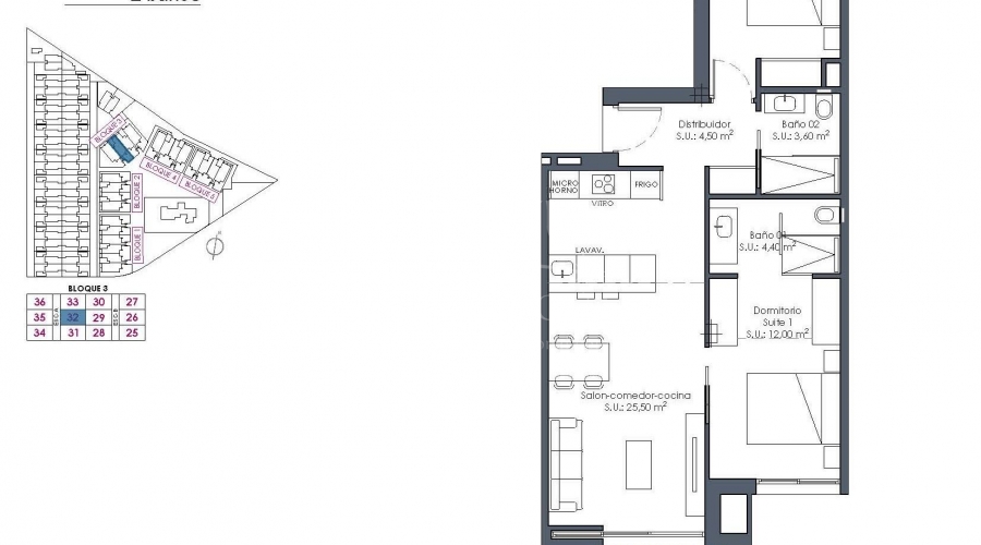 New Build Resort Apartments at La Serena Golf-Los Alcazares Near the Beach Modern Golf Front Living on the Costa Calida Discover this exclusive new build residential resort located at La Serena Golf in Los Alcazares. This contemporary development features 66 stylish apartments with 2 or 3 bedrooms and 2 bathrooms, one of them en suite, designed to offer comfort, elegance and an exceptional Mediterranean lifestyle just 300 meters from the Mar Menor. Los Alcazares is a charming coastal town known for its relaxed atmosphere, sandy beaches and long seaside promenade. With more than 300 days of sunshine per year, the area offers a perfect environment for outdoor living, water sports and golf. The town also provides a wide selection of restaurants, shops, marinas and sports facilities, making it a highly desirable destination for both permanent residence and holiday homes. Apartments with Terraces, Gardens and Private Solariums The residential complex offers several property types to suit different lifestyles. Buyers can choose between ground floor apartments with private gardens, middle floor homes with spacious terraces or penthouses with terraces and large rooftop solariums. The solariums include an outdoor shower and offer the option to add a summer kitchen and private jacuzzi, creating an ideal space for relaxation and entertaining while enjoying open views of the golf course and surrounding landscape. Each home has been designed with bright interiors and open plan living spaces that connect seamlessly with the outdoor areas. Resort Style Amenities and Exceptional Communal Areas One of the most distinctive features of this development is its resort style concept. Residents can enjoy a spectacular lagoon style swimming pool of approximately 190 m2 with beach style access and relaxing areas with Balinese beds. Additional communal facilities include landscaped gardens, a spa area, gym and sauna located in the basement level. The complex also offers a children playground, two petanque courts and communal restrooms near the pool area, creating a welcoming environment for residents and guests. Quality Finishes and Modern Features The apartments are built with modern materials and high quality specifications designed for comfort and style. Fully equipped kitchen with white glass finish appliances Bathrooms with vanity units, shower screens and backlit mirrors Motorized window shutters Basic lighting package Fully installed ducted air conditioning Underground parking space for each property Underground bicycle parking and optional storage rooms Prime Location Close to Beach and Golf Mar Menor beach 0.3 km La Serena Golf next to the development Los Alcazares town center 2 km Cartagena 22 km Murcia 40 km Region de Murcia International Airport 30 km Alicante Elche Airport 90 km The calm and shallow waters of the Mar Menor are ideal for swimming, sailing and paddle surfing throughout the year. Secure Your Home at La Serena Golf Resort These modern apartments combine beachside living, golf views from most units and resort style amenities in one of the most attractive areas of the Costa Calida. Contact us today to receive more information or arrange a visit and secure your new home in La Serena Golf-Los Alcazares.Features