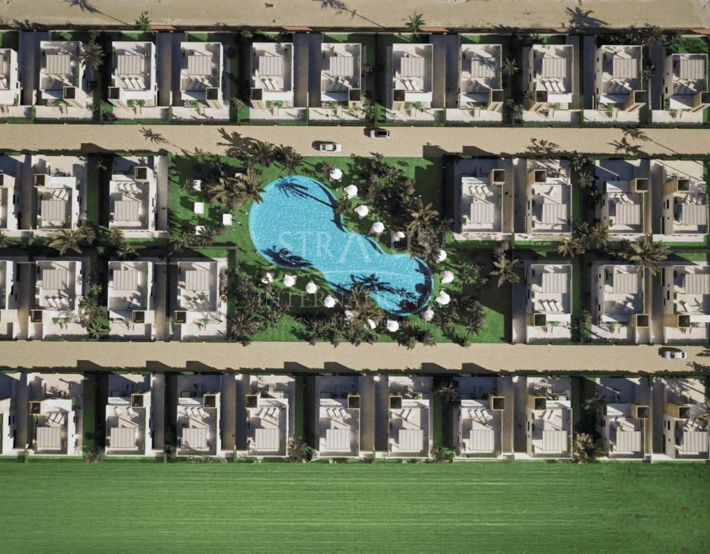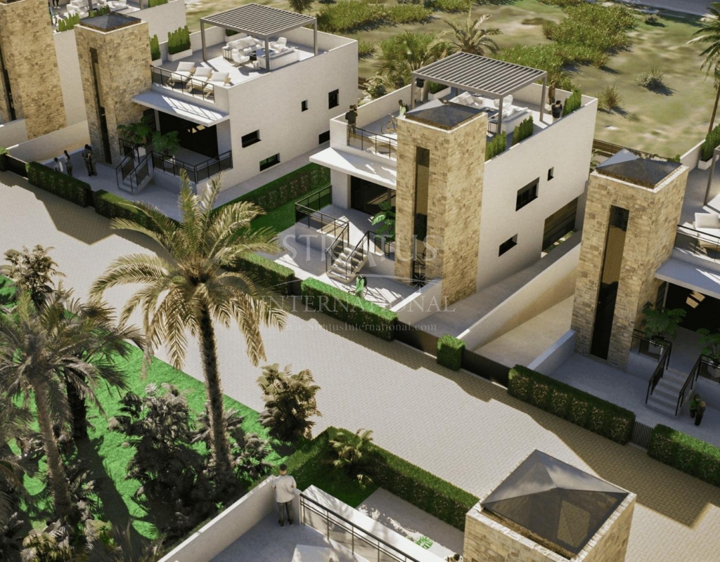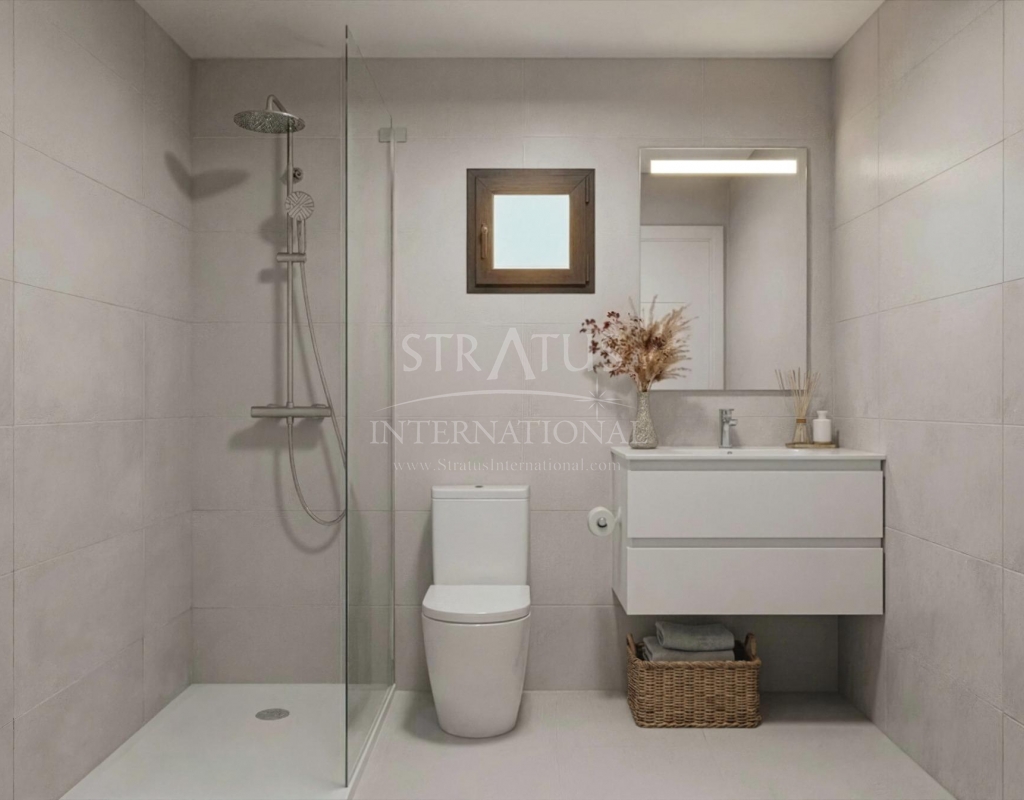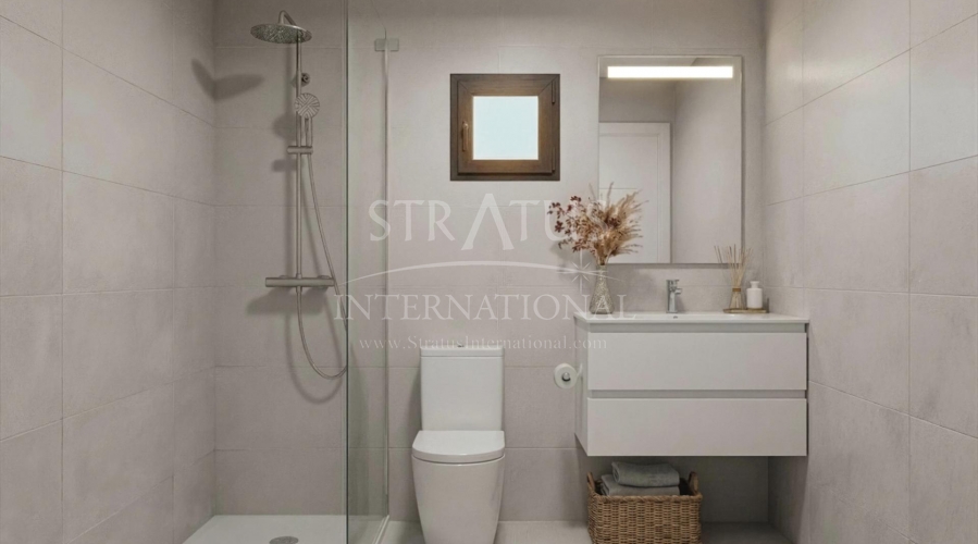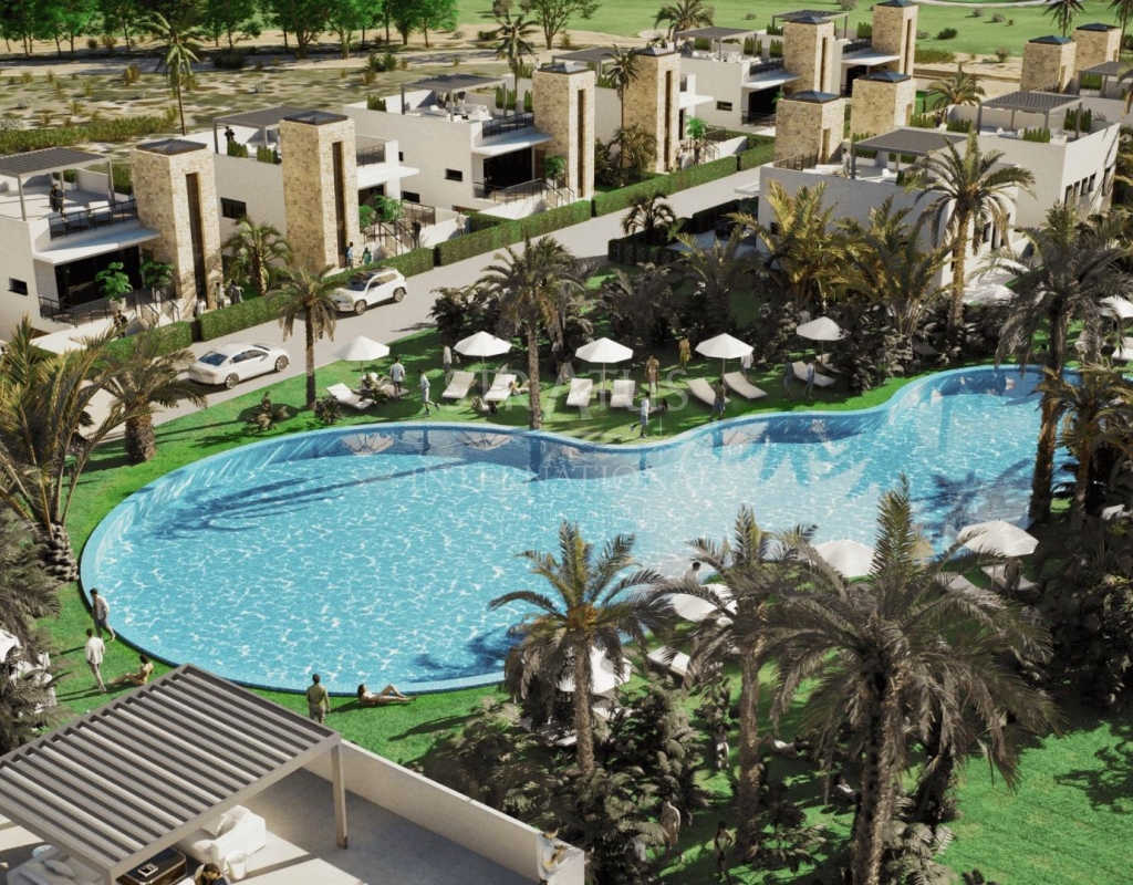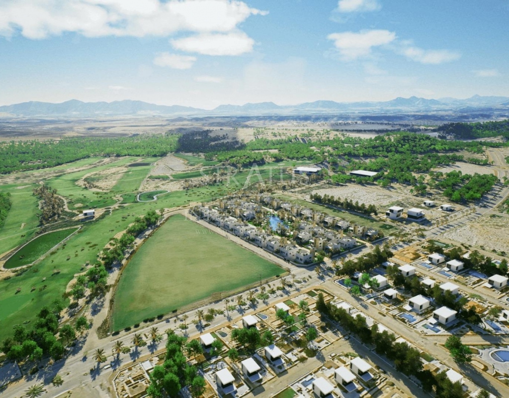 New Build Villas in Camposol Golf (Mazarron-Murcia) with Private Solarium and Basement Exclusive Residential Villas at Camposol Golf Discover this private residential complex of 69 independent villas located in a plot frontline to Camposol Golf in Mazarron, Murcia. Designed around a large central green oasis with a communal swimming pool and landscaped gardens, this development offers a peaceful and secure environment ideal for enjoying the Mediterranean lifestyle. The location combines tranquility with convenience, as the nearby village of El Saladillo provides daily services, shops and local amenities within a short distance. The beautiful beaches of Puerto de Mazarron are just 14 km away, making this an excellent option for both permanent living and holiday homes. Modern Single Level Villas with Flexible Layouts The development offers a selection of modern villas built on one level, available in two or three bedroom configurations. All homes include two bathrooms, one of them en suite, designed with functionality and comfort in mind. Each villa is set on a private plot starting from 300 m2, providing outdoor space for relaxation and entertainment. The properties also feature a private solarium, offering additional outdoor living space with open views of the surrounding golf course and landscape. Basement and Customization Potential A key feature of these villas is the inclusion of a spacious basement, allowing owners to customize the space according to their needs. This area can be adapted into a gym, storage room, home cinema or additional living space, offering great flexibility and added value. The villas are designed with interior stairs connecting all levels, ensuring easy access between the basement, main living area and rooftop solarium. Quality Features and Comfortable Living These new build homes are delivered with high quality finishes and modern features. The kitchens come fully furnished and equipped with appliances, while the bathrooms are completed with shower screens and fittings. Additional features include pre installation for air conditioning, built in wardrobes, electric shutters and a full LED lighting package, ensuring comfort and convenience from day one. Prime Location in Mazarron Near Golf and Coast Camposol is a well established residential area known for its golf course, relaxed atmosphere and international community. Mazarron offers a wide range of services, restaurants and leisure options, while the nearby coast is famous for its sandy beaches and crystal clear waters. Key distances include Camposol Golf on your doorstep, El Saladillo village 2 km, Puerto de Mazarron beaches 14 km, Mazarron town center 10 km, Murcia Corvera Airport 35 km and Cartagena city 40 km. Ideal Investment and Lifestyle Opportunity in Murcia This development offers an excellent opportunity to own a modern villa in a golf front location with great potential for customization and strong rental appeal. Contact us today to receive more information or to arrange a viewing and secure your new villa in Camposol-Mazarron.Features
