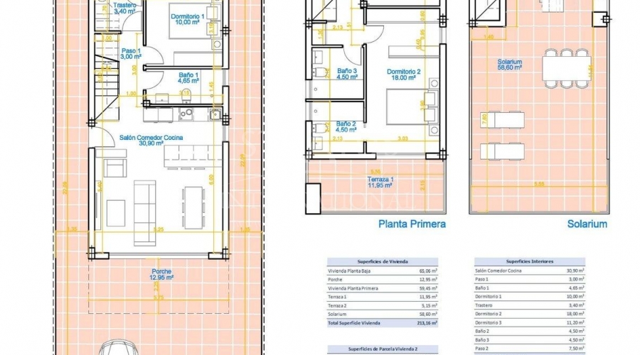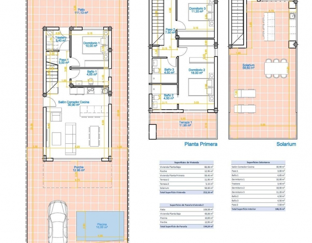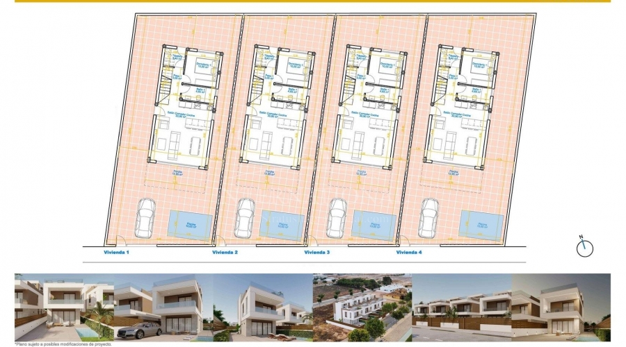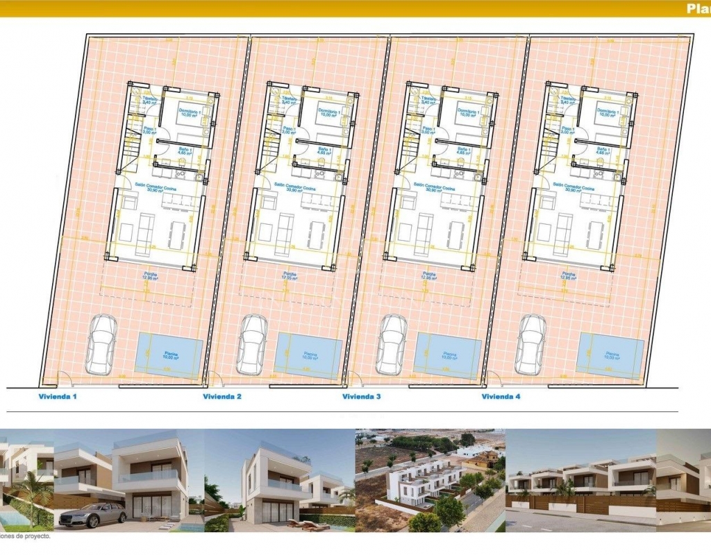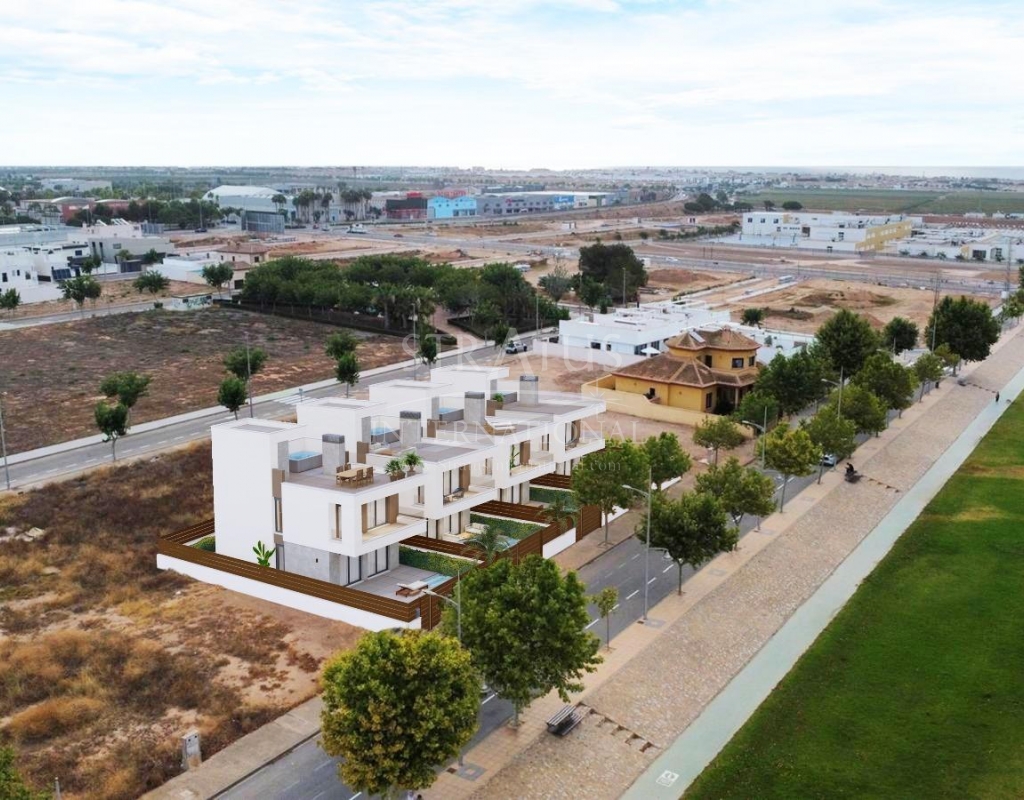 New Build Villas with Private Pool in Pilar de la Horadada Near the Beach Exclusive Development of Modern Villas on the Costa Blanca Discover this boutique development of only four independent villas in Pilar de la Horadada, one of the most attractive coastal towns in the southern Costa Blanca. Ideally located just 2 km from Las Higuericas beach and within walking distance to the town center, these homes offer the perfect combination of privacy, convenience and Mediterranean lifestyle. Set in a quiet residential area with south facing orientation, each villa enjoys sunlight throughout the day, making them especially appealing for international buyers seeking year round outdoor living. Contemporary Design with Customization Options One of the standout features of this development is the ability to personalize your home to suit your lifestyle and preferences. These modern villas are designed with functionality and comfort in mind, combining clean architectural lines with practical living spaces. Each property is distributed over two floors plus a private rooftop solarium. The ground floor features a spacious open plan living and dining area with integrated kitchen, direct access to the front porch, a bedroom, a bathroom and a storage room with access to the rear patio. The first floor offers two additional bedrooms and two bathrooms, including an en suite master bedroom. Both bedrooms have access to private terraces, creating bright and airy spaces. Private Solarium and Outdoor Living Spaces The rooftop solarium is designed for enjoying the Mediterranean climate, complete with a summer kitchen, outdoor shower and pre installation for a jacuzzi and solar panels. Each villa also includes a private swimming pool and on plot parking. These outdoor spaces provide the ideal setting for relaxing, entertaining and enjoying the sunny Costa Blanca lifestyle all year round. High Quality Finishes and Modern Features The villas are built to high standards and include premium features such as a reinforced security door, fully equipped kitchen with appliances, ducted air conditioning, electric shutters and aerothermal system for hot water. Bathrooms are fully fitted with furniture, mirrors, shower screens and underfloor heating. An LED lighting package and additional storage space further enhance comfort and functionality. Prime Location Close to Beaches and Golf Courses Pilar de la Horadada is known for its traditional Spanish charm, vibrant main street and excellent local amenities including shops, restaurants and cafes. The town offers easy access to some of the best beaches and golf courses in the region. Key distances include Las Higuericas beach 2 km, Torre de la Horadada beach 3 km, Mil Palmeras beach 3 km, Lo Romero Golf 6 km, Murcia International Airport 45 km and Alicante Airport 75 km. Ideal Investment or Holiday Home Opportunity These new build villas offer an excellent opportunity to own a modern property near the beach in a highly desirable location on the Costa Blanca. Contact us today to receive more information or to arrange a visit and secure your new home in the sun.Features