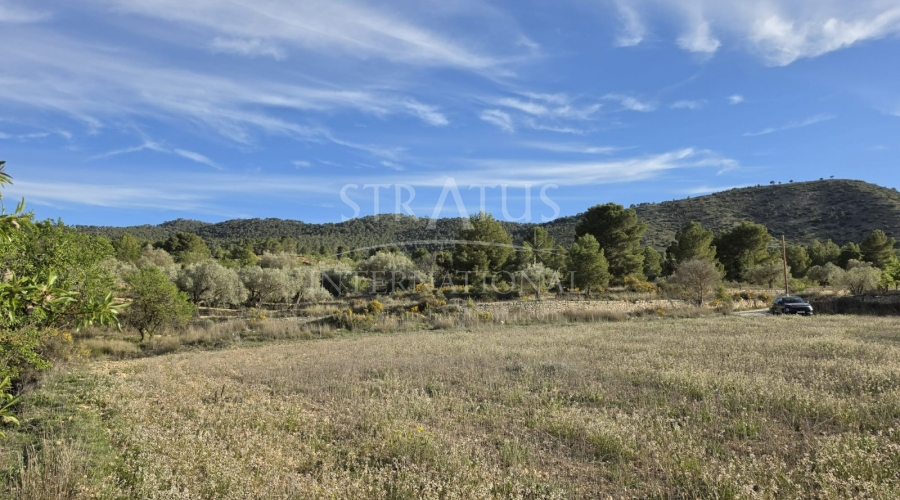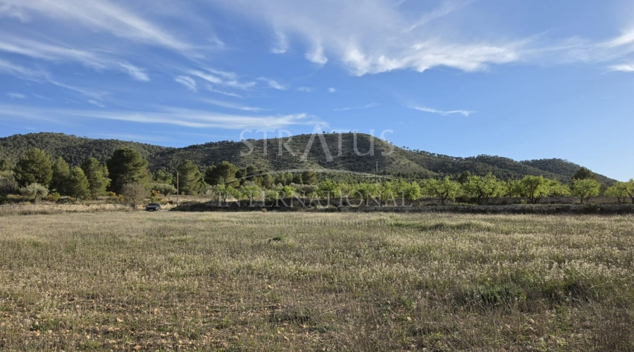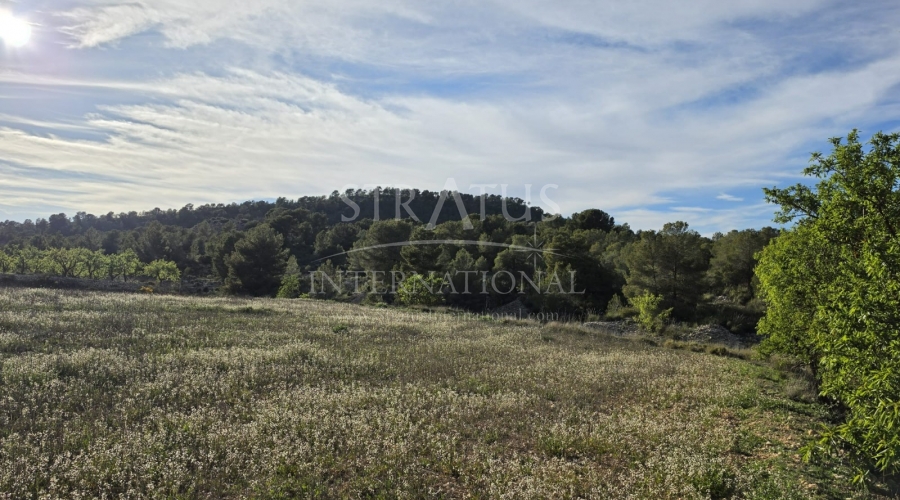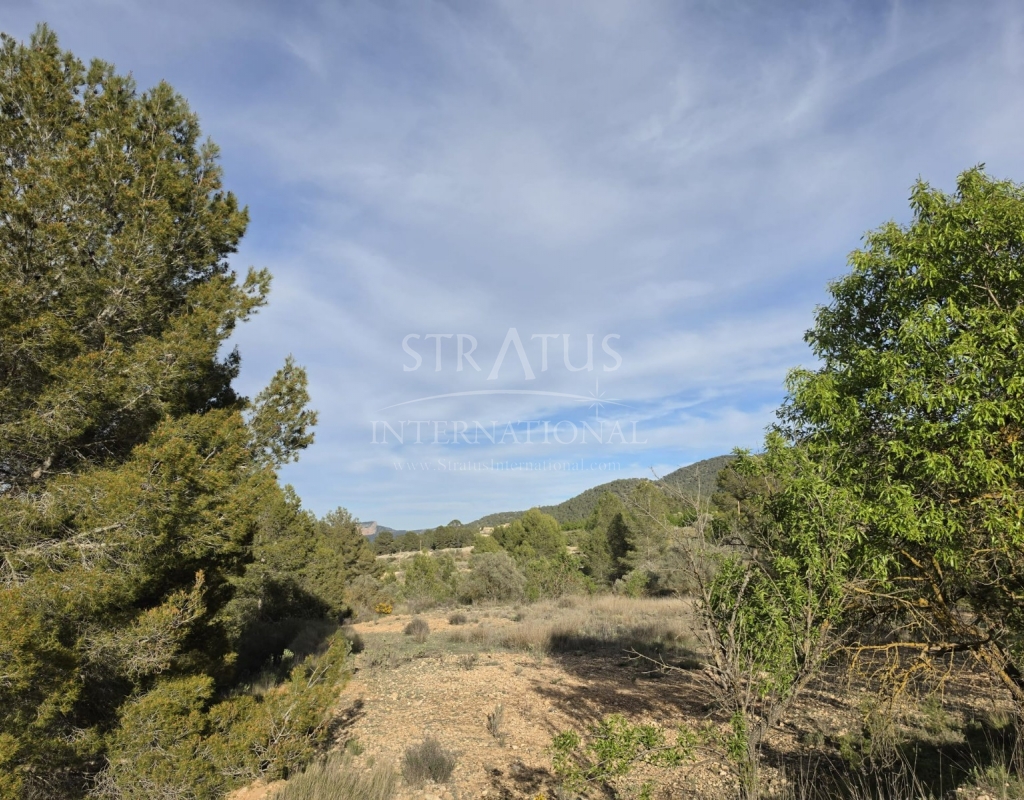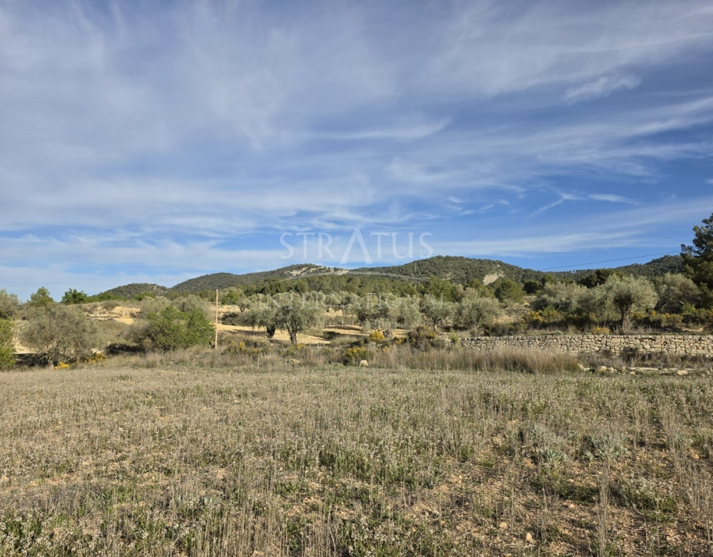 This well-sized agricultural plot is located near Monóvar, close to the village of Casas del Señor, offering a peaceful countryside setting with open views. The land measures 8,802 m² and includes a few pine trees, providing natural shade and character to the plot.