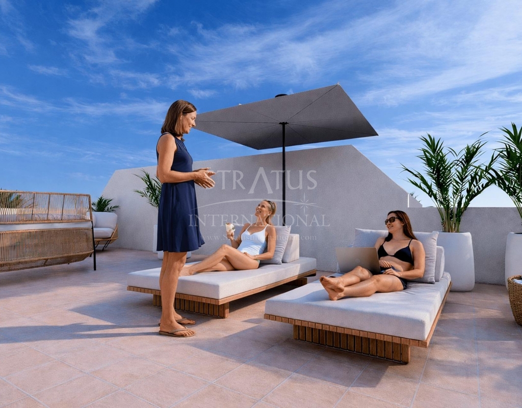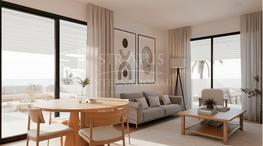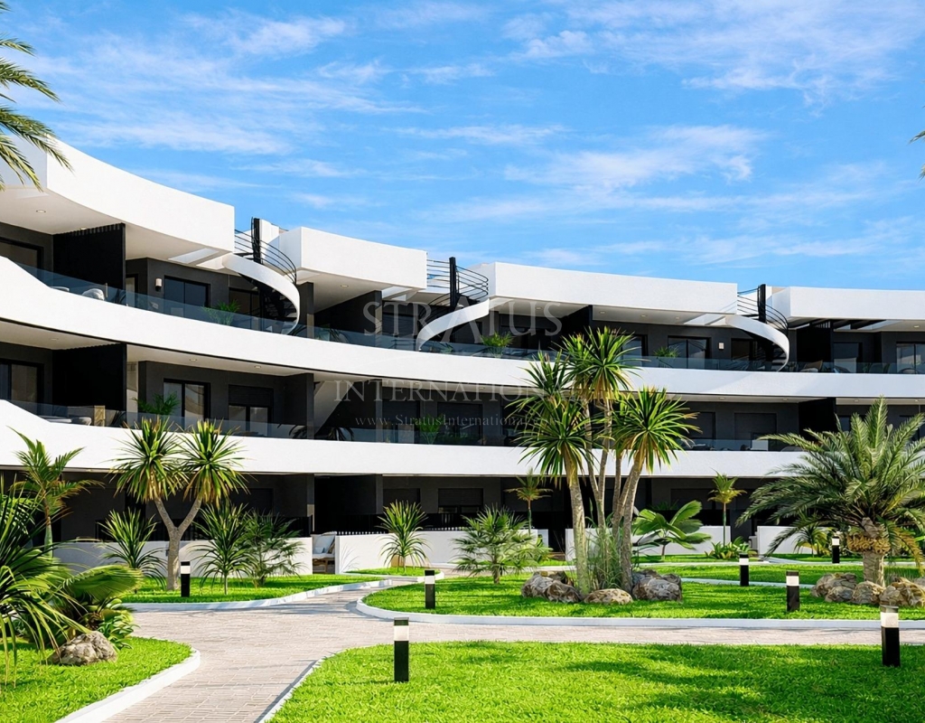 Luxury Golf Front Apartments Near the Sea in Los Alcazares Costa Calida Exclusive New Build Apartments in La Serena Golf Discover this exceptional new residential development located frontline to La Serena Golf in Los Alcazares, just 700 meters from the Mar Menor beaches. This modern complex offers 28 luxury apartments designed to provide maximum comfort, natural light and a high quality Mediterranean lifestyle. The building features a distinctive J shaped design with a curved facade, carefully oriented to enhance sunlight exposure and open views over the golf course and surrounding landscape. Its prime location combines the tranquility of a golf environment with close proximity to the sea and town center. Modern Apartments with Spacious Terraces and Solariums The development offers stylish two and three bedroom apartments, all with two bathrooms including an en suite. Each property has been designed to maximize outdoor living, a key element of life on the Costa Calida. Ground and first floor apartments feature large private terraces, perfect for outdoor dining and relaxation. Top floor properties benefit from generous private solariums, complete with a summer kitchen, offering an ideal space to enjoy the sun all year round. Elegant Interiors and High Quality Finishes Inside, the apartments combine modern design with functional layouts. Open plan living areas connect seamlessly with outdoor spaces, creating bright and comfortable environments. The kitchens come fully equipped with appliances, while bathrooms are delivered complete with vanity units, mirrors and shower screens. Additional features include a reinforced security entrance door, aerothermal system for hot water, LED lighting package and pre installation for ducted air conditioning. Communal Areas Designed for Relaxation Residents can enjoy a large communal swimming pool surrounded by beautifully landscaped gardens, providing a peaceful setting to relax and socialize under the Mediterranean sun. Each apartment also includes a private parking space and storage room in the underground garage, ensuring convenience and security. Prime Location Close to Golf, Beach and Services This development is ideally located just 700 meters from the beach and approximately 1.5 km from the center of Los Alcazares, where you will find a wide range of restaurants, shops, cafes and essential services. Los Alcazares is a popular coastal town known for its relaxed atmosphere, long promenades and warm shallow waters. Key distances include Murcia International Airport 35 km, Alicante Airport 95 km, La Serena Golf at your doorstep, Roda Golf 4 km and Cartagena city 25 km. Ideal Investment or Holiday Home on the Costa Calida These golf front apartments offer an excellent opportunity to own a modern property in a privileged location close to both the sea and golf. Contact us today to receive more information or to arrange a viewing and secure your new home in Los Alcazares.Features