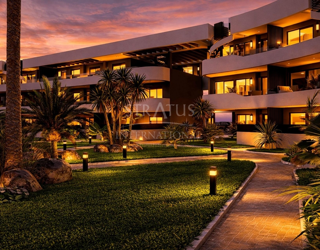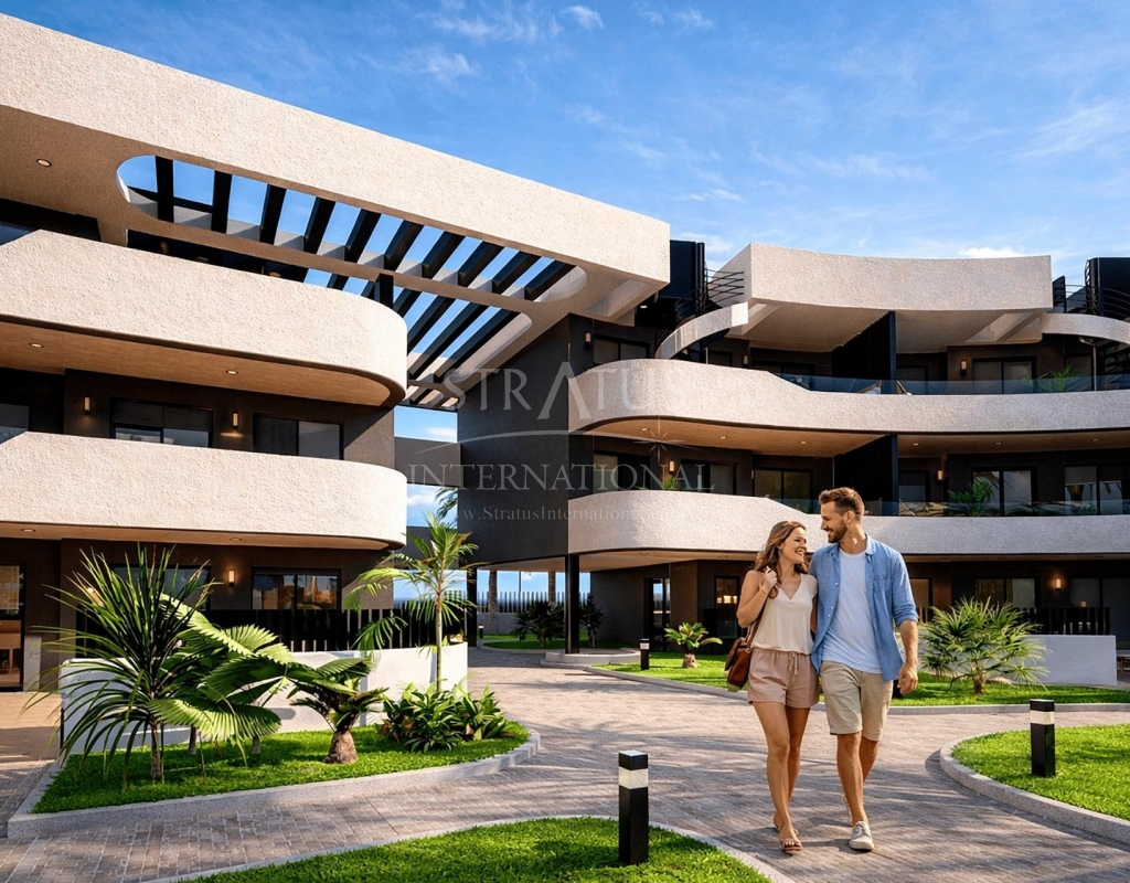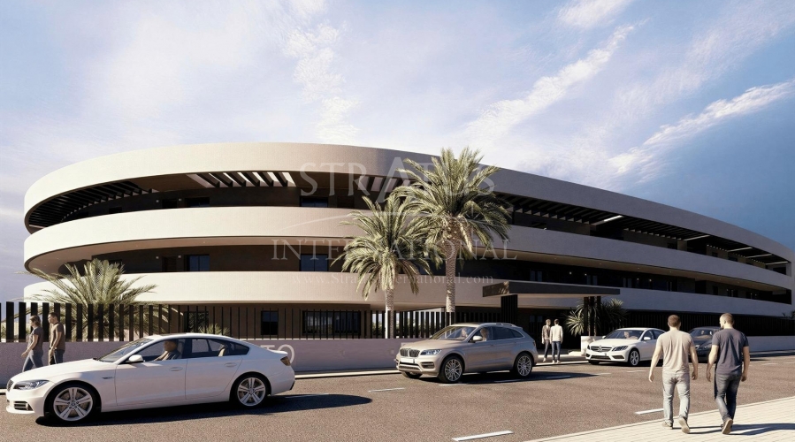 Luxury Golf Front Apartments Near the Sea in Los Alcazares Costa Calida Exclusive New Build Apartments in La Serena Golf Discover this exceptional new residential development located frontline to La Serena Golf in Los Alcazares, just 700 meters from the Mar Menor beaches. This modern complex offers 28 luxury apartments designed to provide maximum comfort, natural light and a high quality Mediterranean lifestyle. The building features a distinctive J shaped design with a curved facade, carefully oriented to enhance sunlight exposure and open views over the golf course and surrounding landscape. Its prime location combines the tranquility of a golf environment with close proximity to the sea and town center. Modern Apartments with Spacious Terraces and Solariums The development offers stylish two and three bedroom apartments, all with two bathrooms including an en suite. Each property has been designed to maximize outdoor living, a key element of life on the Costa Calida. Ground and first floor apartments feature large private terraces, perfect for outdoor dining and relaxation. Top floor properties benefit from generous private solariums, complete with a summer kitchen, offering an ideal space to enjoy the sun all year round. Elegant Interiors and High Quality Finishes Inside, the apartments combine modern design with functional layouts. Open plan living areas connect seamlessly with outdoor spaces, creating bright and comfortable environments. The kitchens come fully equipped with appliances, while bathrooms are delivered complete with vanity units, mirrors and shower screens. Additional features include a reinforced security entrance door, aerothermal system for hot water, LED lighting package and pre installation for ducted air conditioning. Communal Areas Designed for Relaxation Residents can enjoy a large communal swimming pool surrounded by beautifully landscaped gardens, providing a peaceful setting to relax and socialize under the Mediterranean sun. Each apartment also includes a private parking space and storage room in the underground garage, ensuring convenience and security. Prime Location Close to Golf, Beach and Services This development is ideally located just 700 meters from the beach and approximately 1.5 km from the center of Los Alcazares, where you will find a wide range of restaurants, shops, cafes and essential services. Los Alcazares is a popular coastal town known for its relaxed atmosphere, long promenades and warm shallow waters. Key distances include Murcia International Airport 35 km, Alicante Airport 95 km, La Serena Golf at your doorstep, Roda Golf 4 km and Cartagena city 25 km. Ideal Investment or Holiday Home on the Costa Calida These golf front apartments offer an excellent opportunity to own a modern property in a privileged location close to both the sea and golf. Contact us today to receive more information or to arrange a viewing and secure your new home in Los Alcazares.Features