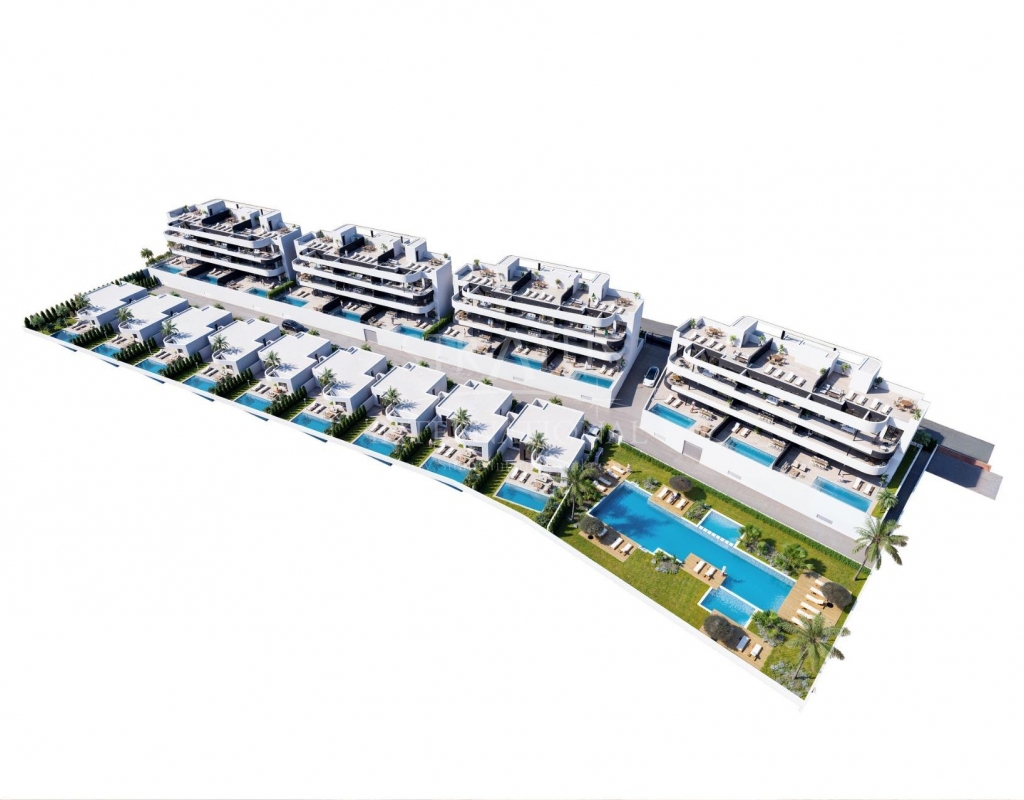 New Build Golf Front Apartments and Villas in La Serena Golf Los Alcazares Exclusive Residential Development Frontline to La Serena Golf Discover this exceptional new build residential development located frontline to La Serena Golf in Los Alcazares, one of the most desirable coastal towns on the Costa Calida. This exclusive community offers a premium lifestyle surrounded by nature, open views and direct access to a renowned 18 hole golf course known for its flat terrain, scenic lakes and technical challenges. Ideally situated just 1.7 km from the beaches of the Mar Menor and the town center, residents can enjoy both tranquility and easy access to restaurants, shops and all essential services. Los Alcazares is well known for its relaxed atmosphere, long promenades and warm shallow waters, making it perfect for year round living or holiday stays. Modern Apartments with Terraces and Private Solariums The development includes 36 contemporary apartments distributed across four blocks. Buyers can choose between two or three bedroom layouts with two bathrooms, including an en suite. Ground floor apartments feature spacious terraces with the option to add a private pool. Middle floor units offer generous outdoor terraces, while penthouses include private solariums ideal for sunbathing and outdoor dining. All apartments include underground parking and a storage room with elevator access. The community also offers beautifully landscaped Mediterranean gardens and a large communal swimming pool for residents to enjoy. Stylish Single Level Villas with Private Pool In addition to the apartments, the development offers nine exclusive single level villas. These homes feature three bedrooms, two bathrooms and an additional guest toilet, all designed to provide seamless indoor and outdoor living. Each villa includes a private swimming pool, garden, storage room and private parking. A spacious open basement provides additional flexible space that can be adapted to suit individual needs such as a gym, entertainment area or extra storage. High Quality Finishes and Energy Efficient Design All properties are built with high quality materials and modern specifications. Features include aluminum exterior carpentry with thermal break, fully equipped bathrooms with vanity units and glass shower screens, and pre installation for ducted air conditioning and furnished kitchens in apartments. Villas come with fully installed air conditioning systems and fully equipped kitchens with appliances. Elevators are available in apartment blocks, ensuring comfort and accessibility. Prime Location Close to Golf, Beaches and Amenities This development offers excellent connectivity to key points of interest. Murcia International Airport is 35 km away and Alicante Airport is 95 km. The marina of Los Alcazares is just 2 km away, Dos Mares shopping center is 15 km and Roda Golf is only 4 km from the development. Cartagena city center is located 25 km away. Ideal Investment and Mediterranean Lifestyle Opportunity This golf front development offers a unique opportunity to enjoy modern living in a privileged setting close to both the sea and golf. Contact us today to receive more information or to arrange a viewing and find your perfect home in Los Alcazares.Features