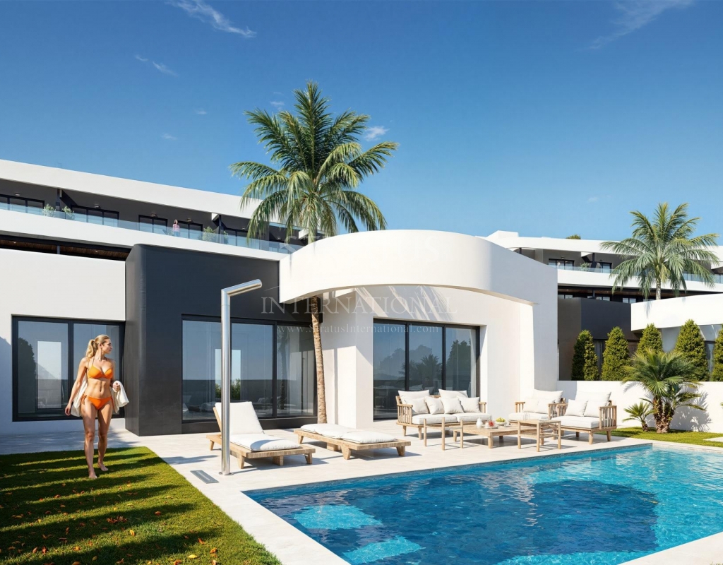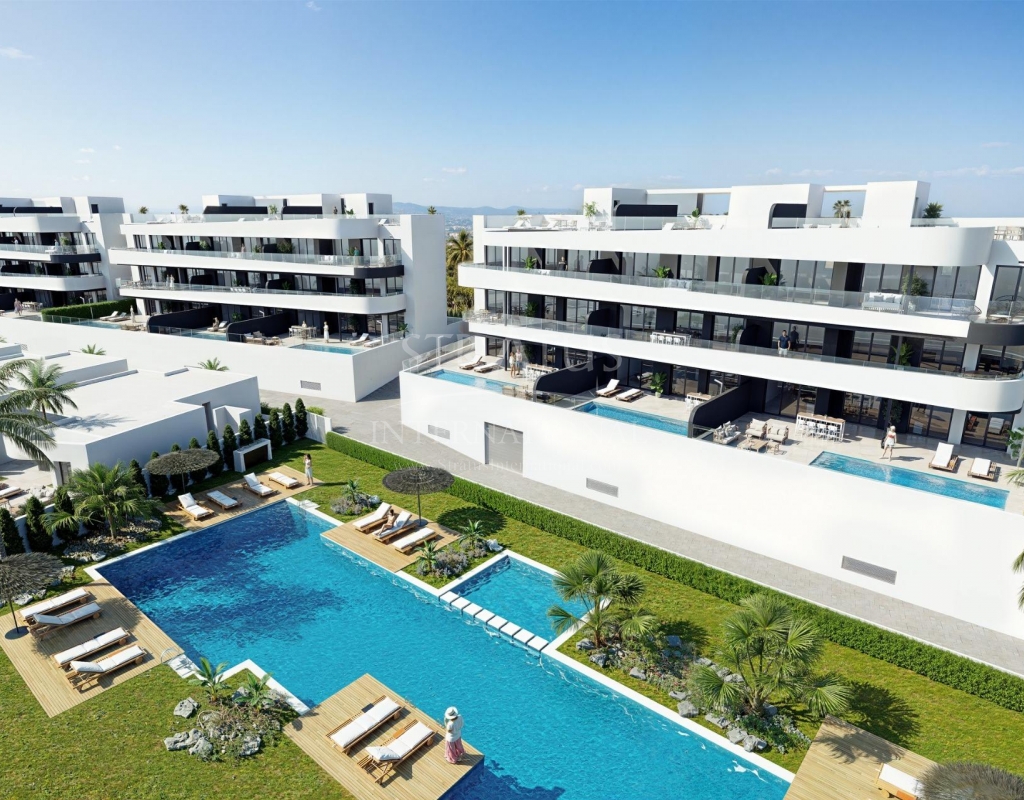 New Build Golf Front Apartments and Villas in La Serena Golf Los Alcazares Exclusive Residential Development Frontline to La Serena Golf Discover this exceptional new build residential development located frontline to La Serena Golf in Los Alcazares, one of the most desirable coastal towns on the Costa Calida. This exclusive community offers a premium lifestyle surrounded by nature, open views and direct access to a renowned 18 hole golf course known for its flat terrain, scenic lakes and technical challenges. Ideally situated just 1.7 km from the beaches of the Mar Menor and the town center, residents can enjoy both tranquility and easy access to restaurants, shops and all essential services. Los Alcazares is well known for its relaxed atmosphere, long promenades and warm shallow waters, making it perfect for year round living or holiday stays. Modern Apartments with Terraces and Private Solariums The development includes 36 contemporary apartments distributed across four blocks. Buyers can choose between two or three bedroom layouts with two bathrooms, including an en suite. Ground floor apartments feature spacious terraces with the option to add a private pool. Middle floor units offer generous outdoor terraces, while penthouses include private solariums ideal for sunbathing and outdoor dining. All apartments include underground parking and a storage room with elevator access. The community also offers beautifully landscaped Mediterranean gardens and a large communal swimming pool for residents to enjoy. Stylish Single Level Villas with Private Pool In addition to the apartments, the development offers nine exclusive single level villas. These homes feature three bedrooms, two bathrooms and an additional guest toilet, all designed to provide seamless indoor and outdoor living. Each villa includes a private swimming pool, garden, storage room and private parking. A spacious open basement provides additional flexible space that can be adapted to suit individual needs such as a gym, entertainment area or extra storage. High Quality Finishes and Energy Efficient Design All properties are built with high quality materials and modern specifications. Features include aluminum exterior carpentry with thermal break, fully equipped bathrooms with vanity units and glass shower screens, and pre installation for ducted air conditioning and furnished kitchens in apartments. Villas come with fully installed air conditioning systems and fully equipped kitchens with appliances. Elevators are available in apartment blocks, ensuring comfort and accessibility. Prime Location Close to Golf, Beaches and Amenities This development offers excellent connectivity to key points of interest. Murcia International Airport is 35 km away and Alicante Airport is 95 km. The marina of Los Alcazares is just 2 km away, Dos Mares shopping center is 15 km and Roda Golf is only 4 km from the development. Cartagena city center is located 25 km away. Ideal Investment and Mediterranean Lifestyle Opportunity This golf front development offers a unique opportunity to enjoy modern living in a privileged setting close to both the sea and golf. Contact us today to receive more information or to arrange a viewing and find your perfect home in Los Alcazares.Features