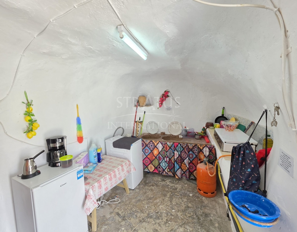 This traditional cave house is located in the peaceful area of La Zarza, offering a unique living space with easy access from the main road via a tarmac track. Set on a 4,341 m² plot, the land includes olive trees and open views across the surrounding countryside.