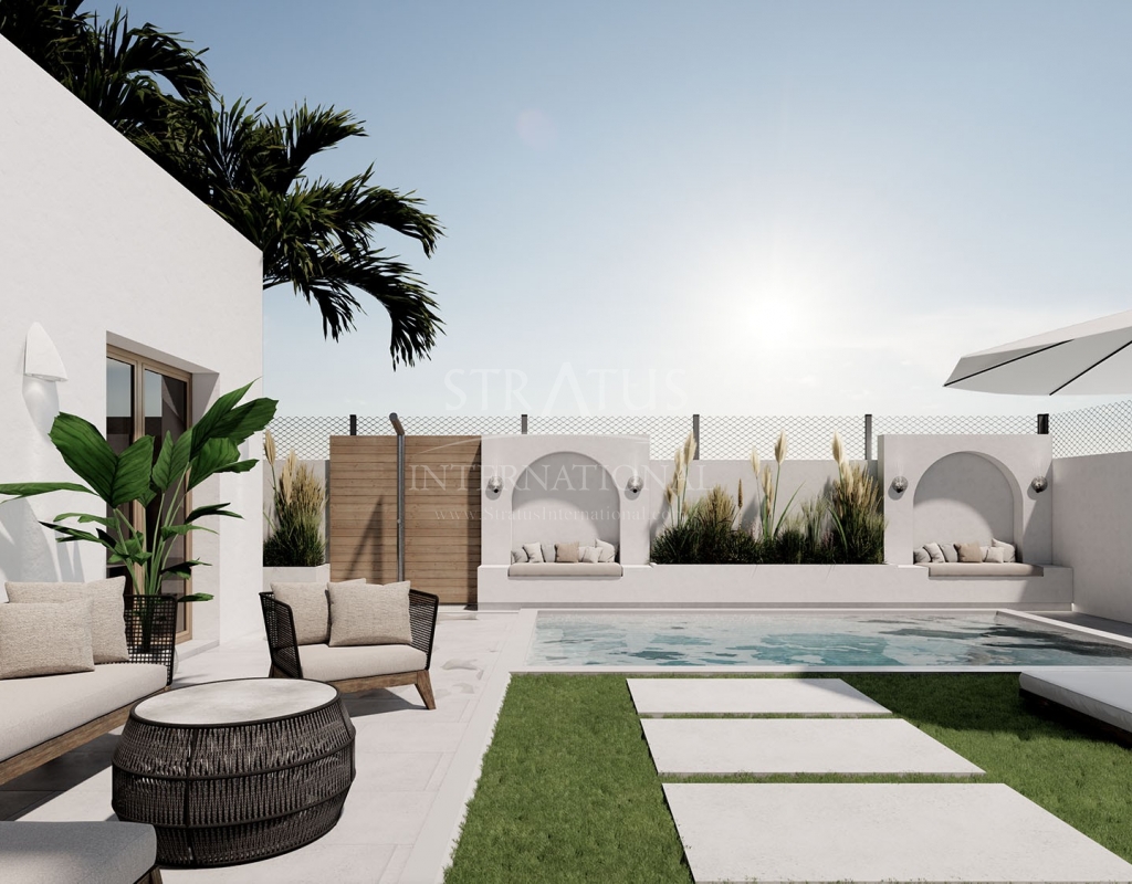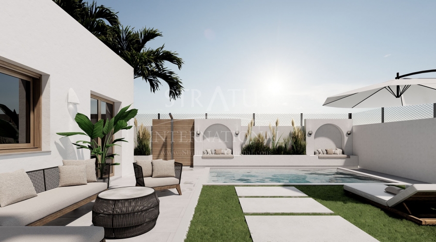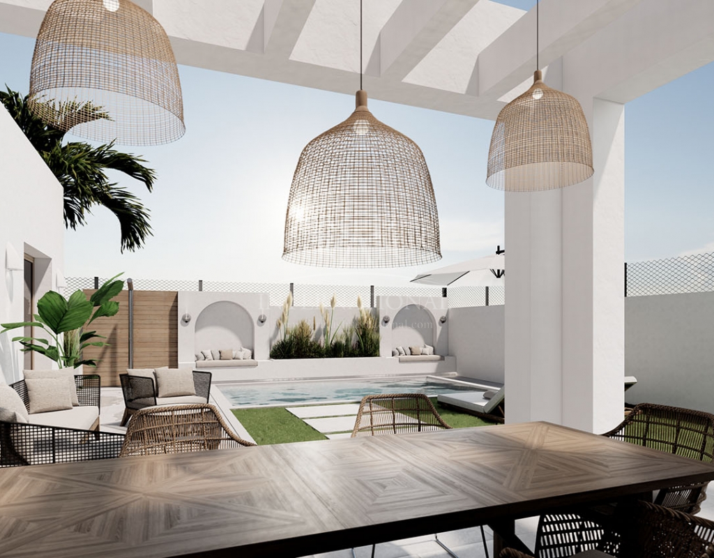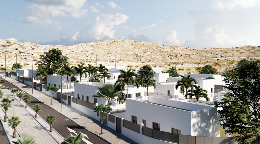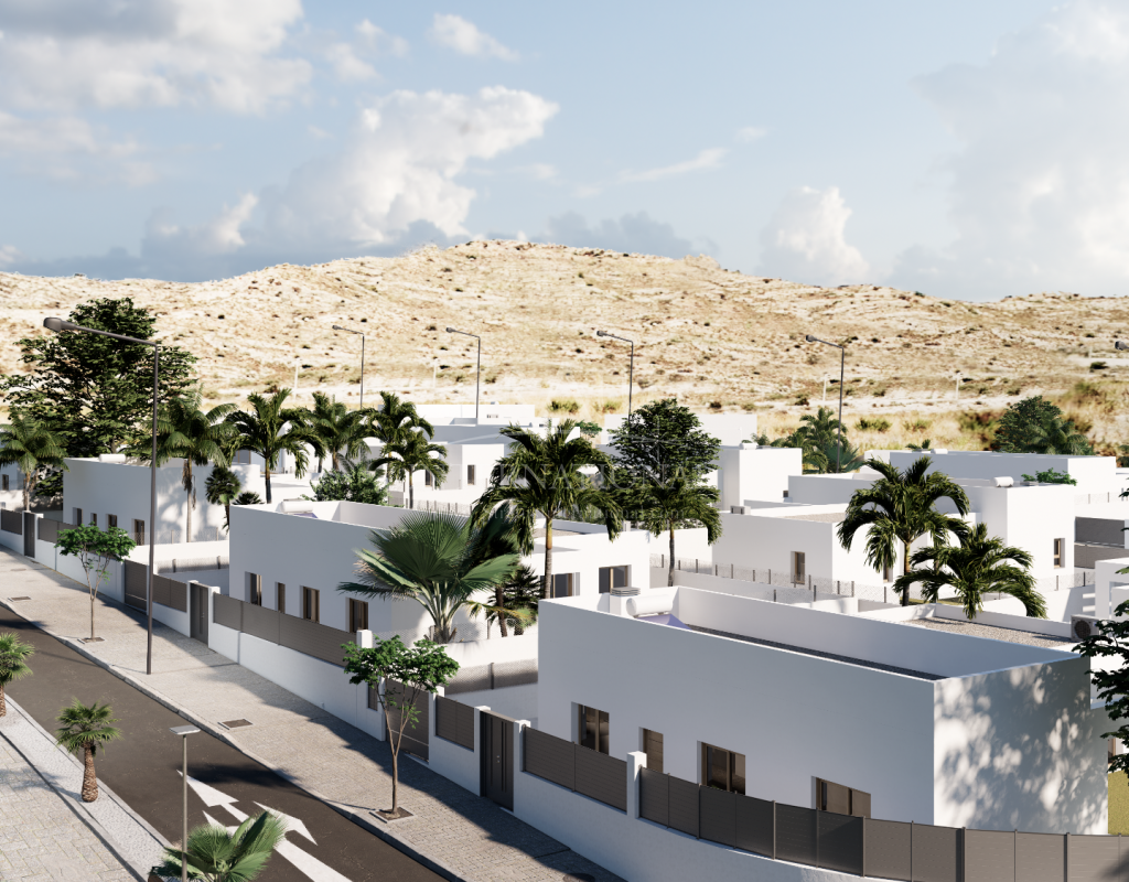 Project to build 17 single family homes in a development just on the outskirts of Aspe, Alicante. These are beautifully finished villas which offer a modern and contemporary design and look, offering plenty of light and blending indoor and outdoor living. The property offers three bedrooms, two bathrooms with a total built area of 128m2 on a plot of approx. 400m2. A private swimming pool is included in the license for each house - if you want one build it is an extra for approximately € 10,000. Depending on the stage of the build, you can modifying customise the build to suit you as well as have the outside garden space landscaped to your taste. Contact us to arrange viewing.